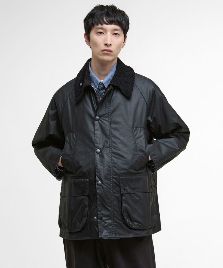 スーツに合わせても綺麗に見える着丈、動きを制限しないサイドベンツ、ラグランスリーブ、ポケットには防寒性の高いハンドウォーマーと風の入り込まないリブ仕様。そしてオイルドコットンの生地と大ぶりの襟にはコーデュロイ生地が用いられ、バブアーと言えばまさにこのモデルといった王道の風格を醸し出しています。