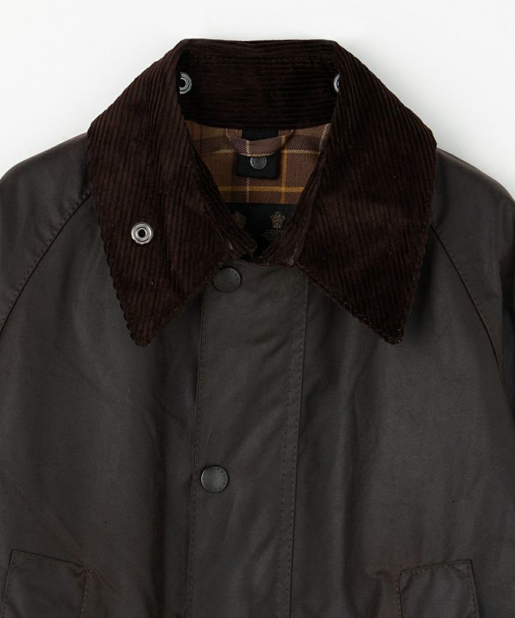 スーツに合わせても綺麗に見える着丈、動きを制限しないサイドベンツ、ラグランスリーブ、ポケットには防寒性の高いハンドウォーマーと風の入り込まないリブ仕様。そしてオイルドコットンの生地と大ぶりの襟にはコーデュロイ生地が用いられ、バブアーと言えばまさにこのモデルといった王道の風格を醸し出しています。こちらはレギュラーフィットを採用した英国正統派向けのサイジングとなっています。