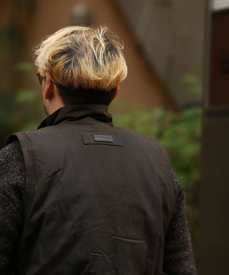 ワックスコットンとコーデュロイの襟をアクセントに、ビデイルとも共通するポケットの配置や、ライニングには象徴的なタータンチェックを施していることなどが特徴。また、ベストであることで素材の主張も程よく控えめになり、シャツやニットの上からで気軽に楽しむことができます。これからの季節にロングスパンでの活躍が期待できる一枚です。