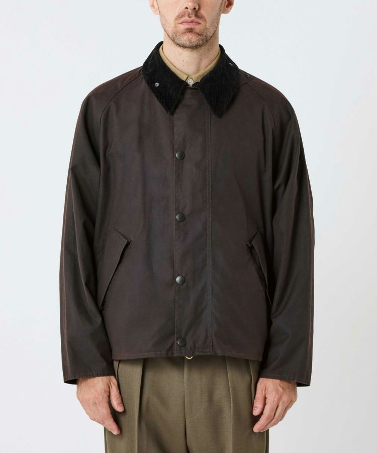 セカンドバブアーです。 茶色がどんなエイジングを見せるのか、楽しみながら着て行きたいと思います。 コーディロイの襟は黒なので、顔が締まって見えます。 セージやネイビーもかっこいいですが、この色はお勧めです。 この色を中バブや長バブに展開されても良いと思います。