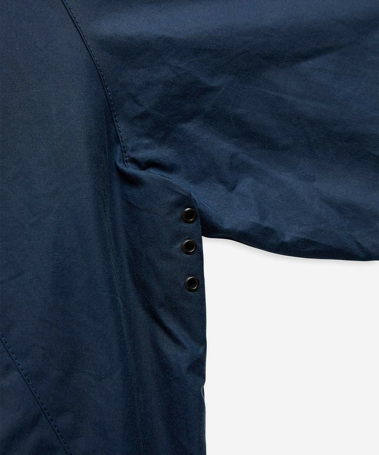 マウンテンバイクに乗る人々からインスピレーションを得て誕生したモデル。可動域の広いラグランスリーブ・フロントのハンドウォーマーポケット・バックの内側に配された風除けのパーツなど、従来の仕様はそのままで、全体的にややオーバーサイズのフィッティング。身頃内側にはドローコードを備えるとともに、前傾になるサイクリングスタイルを考慮し、ゴムシャーリング入りのウエストゲーターが。これを留めることで、裾から風が入るのを防ぎ、防寒性をアップさせています。定番モデルのビデイルに比べ短い着丈になっているため羽織りやすく軽快な一着。重すぎず軽すぎずの中間の重さ6オンス生地を採用。高い防水性はそのままに全天候向きで動きやすく、悪条件や激しい使用にも耐えられる厚さです。