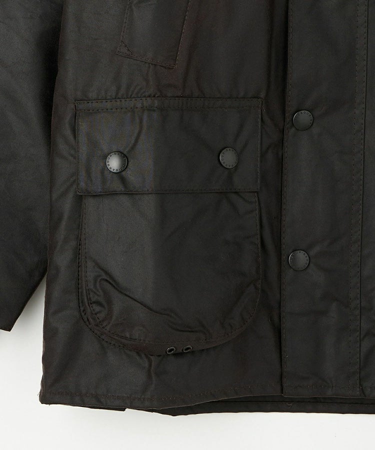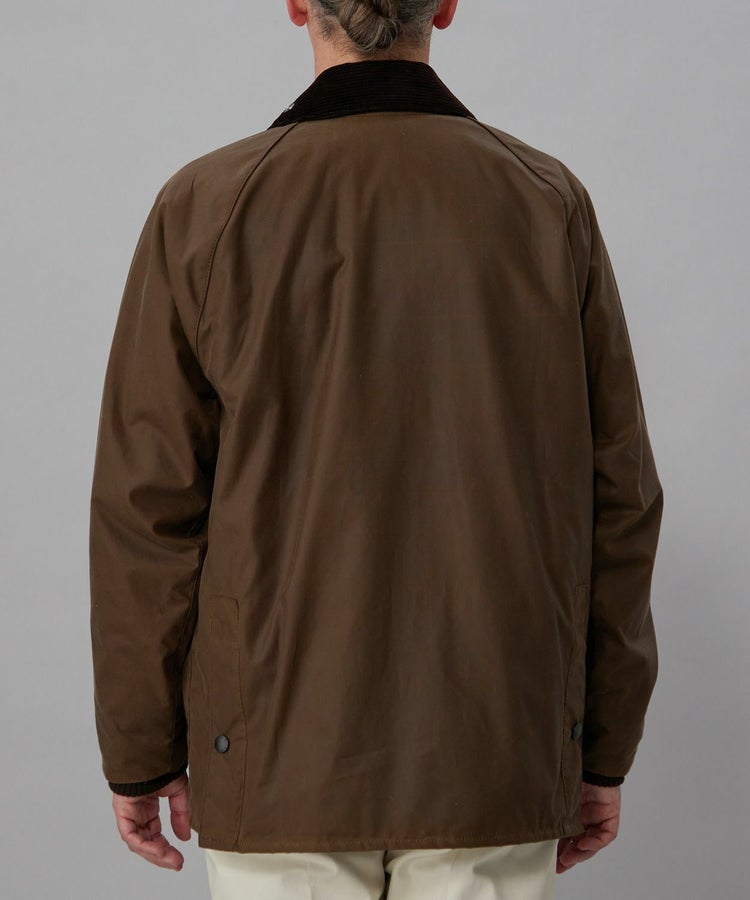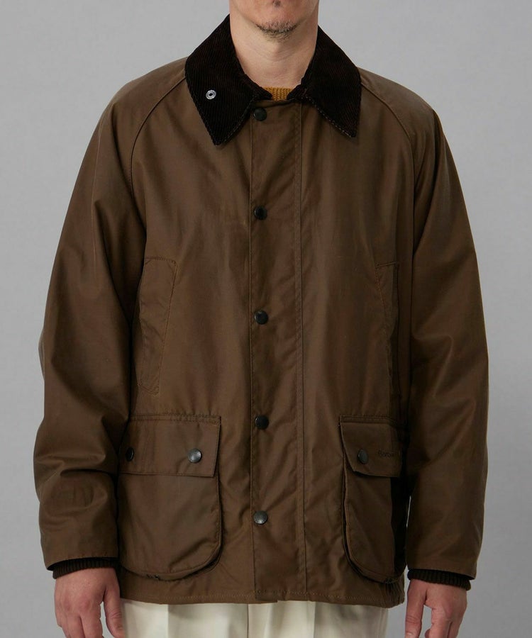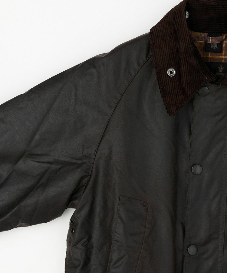 スーツに合わせても綺麗に見える着丈、動きを制限しないサイドベンツ、ラグランスリーブ、ポケットには防寒性の高いハンドウォーマーと風の入り込まないリブ仕様。そしてオイルドコットンの生地と大ぶりの襟にはコーデュロイ生地が用いられ、バブアーと言えばまさにこのモデルといった王道の風格を醸し出しています。こちらはレギュラーフィットを採用した英国正統派向けのサイジングとなっています。