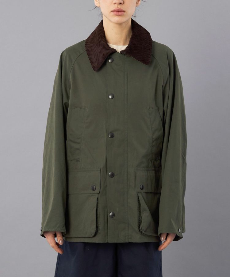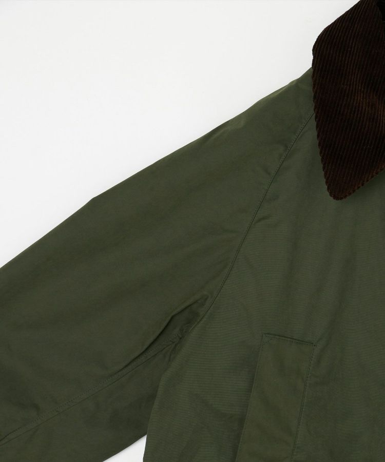 その名の通り、桃のように微起毛でしっとりとした滑らかな肌触りと軽やかな質感が特徴。もともと乗馬用ジャケットとして生み出され、ジョッキーたちのアドバイスを反映し、馬に乗った際に裾が突っ張ることなくきれいに着られるよう、サイドベンツ仕様になっています。また、ライディングポーズを優雅に保つため、丈が長めの作りです。こうした誕生背景を感じさせるデザインを楽しみつつ、ノンワックスならではの軽やかな着心地とクラシックモデルよりもややゆったりとしたシルエットも魅力。シーズンを問わず活躍できる一枚です。
