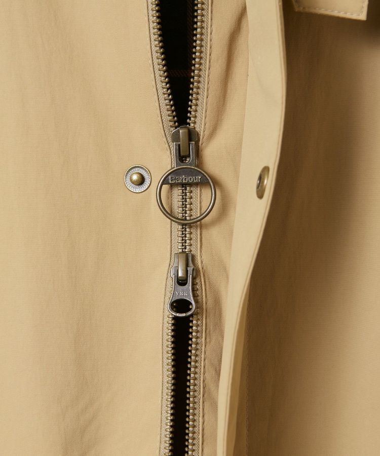 可動域の広いラグランスリーブやダブルジップなど、バブアー特有の機能的なデザインはそのままに、ハンドウォーマーポケットを配備し見た目はすっきりとシンプルに。コーデュロイの衿はチンストラップを備えており、衿を立てた時もしっかりホールドしてくれます。袖口には調節可能なスナップボタンを備えています。