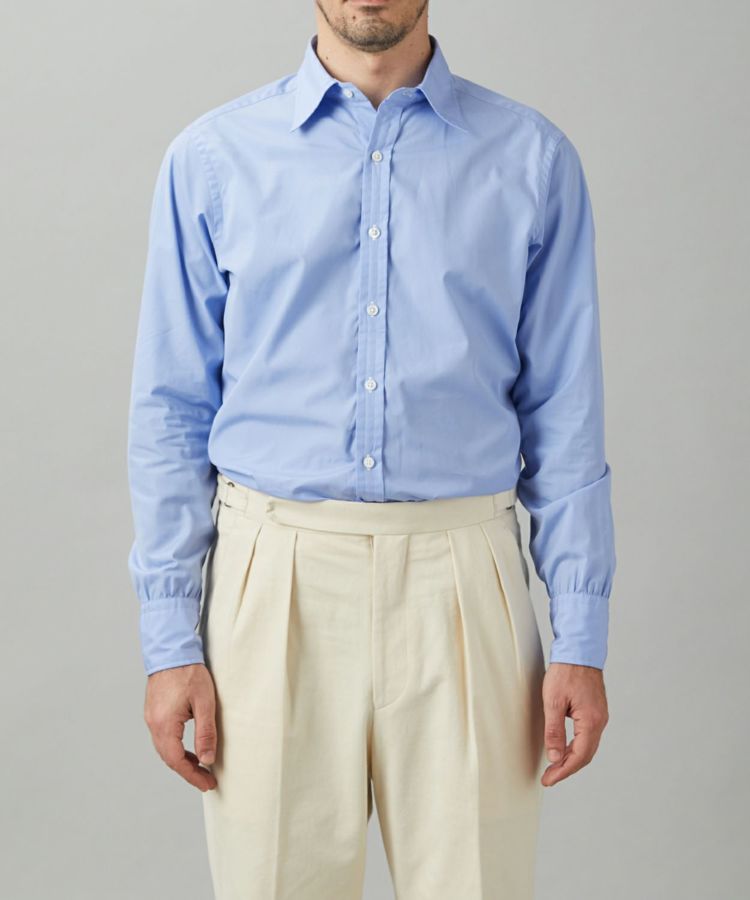 ・英国式ドレスシャツらしいレギュラーカラーを採用