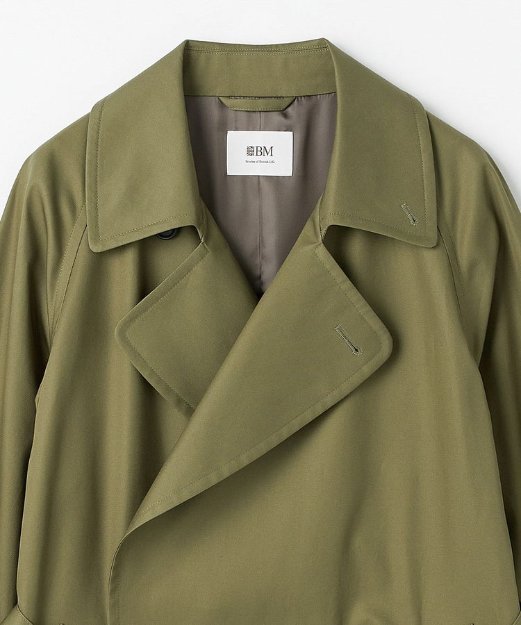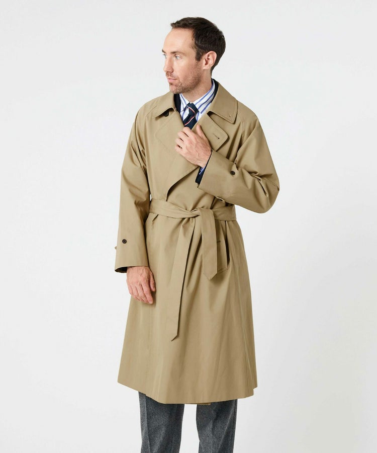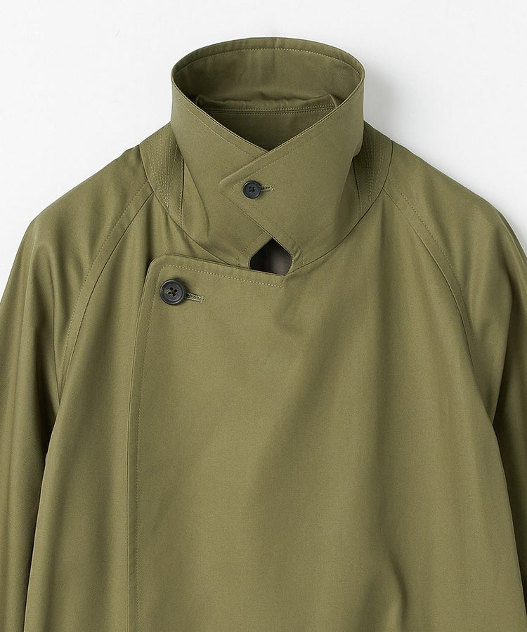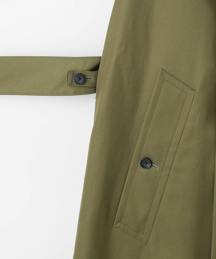 生地には、王道感のあるコットンギャバジンを採用。耐久性が高く、滑らかでしなやかな風合いがあり、程よい品の良さを引き立ててくれます。撥水加工が施されているところもポイント。丁寧なステッチワークを得意とする国内工場で生産するなど、細部にまでこだわった上質な一着です。