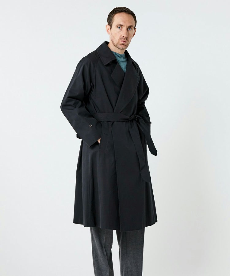 コートを“着込む”というよりも、軽やかに“羽織る”イメージで、作りやディテールを現代のライフスタイルに合うようアップデート。中でもこだわったポイントは、足さばきに影響が出ない範囲で考えられた長めの着丈。またドレープがキレイに出る生地の特性を活かし、インバーテッドバックプリーツを深くし、ベルトを結んだ時キレイに「X」ラインが出るよう考えられたデザインとシルエット。結んだ際バランス調整ができるようベルトは長めの仕様になっております。