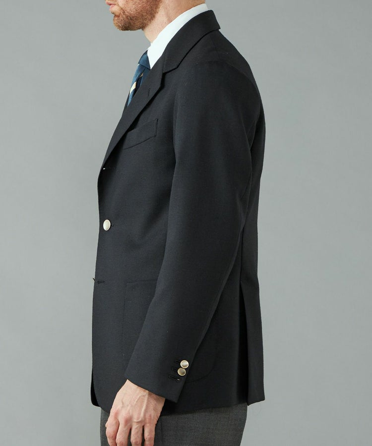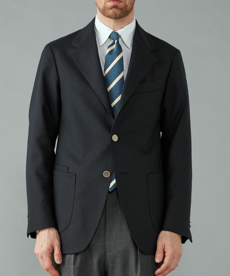 1900年代前半のイギリスのジャケットによく見られるディティールを踏襲しつつ、現代的な解釈にて再構築することでタイドアップだけでなく、カジュアルでも使えるネイビーブレザー。