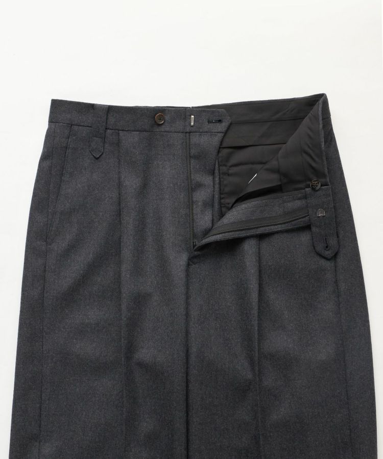 スタイリスト四方章敬氏の理想とする立体的なドレスシルエットと、快適な穿き心地を両立させた一本です。オンオフを問わず活躍する、現代的なドレスワイドトラウザーに仕上げています。
