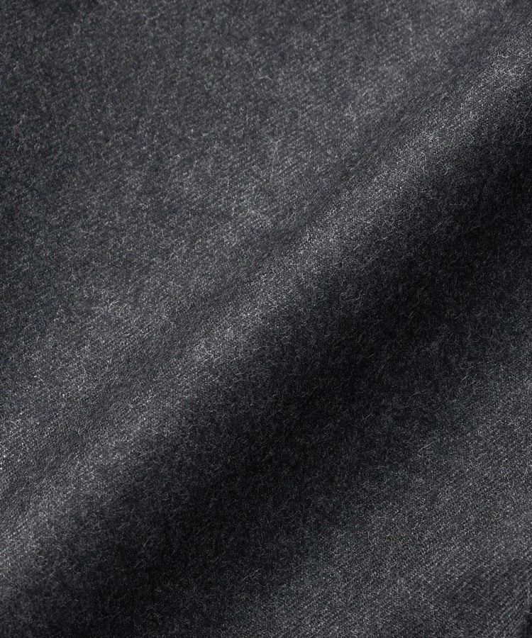 高密度に織り上げたウールフラノ素材。縦糸・横糸ともに2/60の梳毛双糸を使用し、380g/mのしっかりとした肉感を持ちながらも、しなやかさと上品な艶を兼ね備えています。一般的な紡毛フラノに比べ、きめ細かく滑らかなタッチが特徴で、サキソニーのような柔らかさと、ハリを両立。秋冬のスタイリングを格上げする上質な表情に仕上げています。