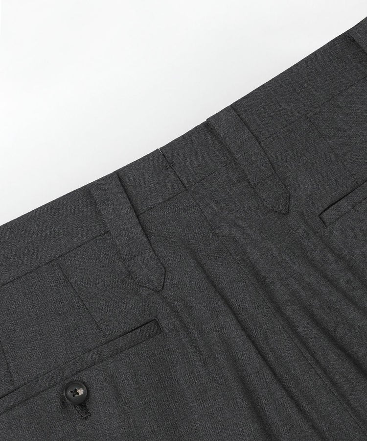 ウール100の高級糸であり、SP110の原料を用いた「SUPERSONIC」と呼ばれる生地。糸を強撚にすることで、肌離れもよくかつシワになりづらい特性と、適度なストレッチ性を実現しています。また適度な重みのある生地を選ぶことで、真冬以外の3シーズン着用いただける使い勝手の良い生地です。