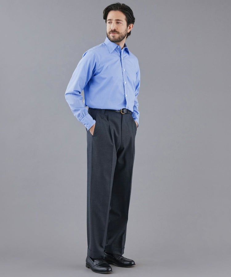 スタイリスト四方さんの考える理想的なシルエットや、ドレスディテールを融合。ドレスパンツのような立体的な美しさと穿きやすさを兼備した、大人も穿ける魅力的な仕上がりになっています。またマーベルト(※)仕様のためシャツをタックインした際にズリ上がりにくくなっております。オンオフがシームレス化する今のライフスタイルに最適なパンツです。