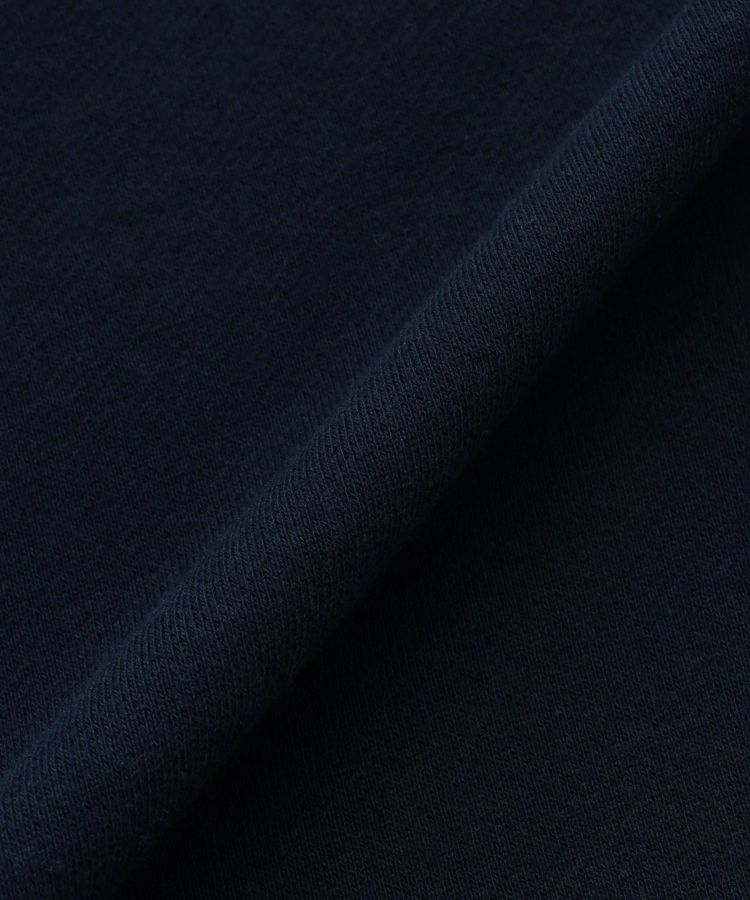前面の肩の部分にはサドルショルダースリーブ、背面にはラグランスリーブを採用しました。両方とも自然に肩に沿うといった特徴があり、特に前面に採用されたサドルショルダーは、縫い目が肩に沿っているため目立ちにくく一枚でもすっきりとした印象になります。素材にはふんわりとしたボリューム感と柔らかさが魅力のコットンに、オゾン加工でドライな風合いの自然なヴィンテージ感を表現しています。
