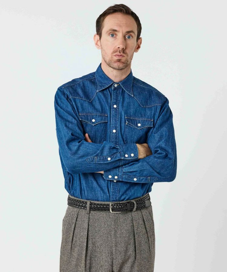 ウエスタンシャツという無骨なアイテムを、BMの視点で再構築しました。ジャケットの下に収めたときの絶妙なバランスと、ゆったりとした着心地、そして端正な表情までを追求し、時間をかけて仕上げた一枚です。