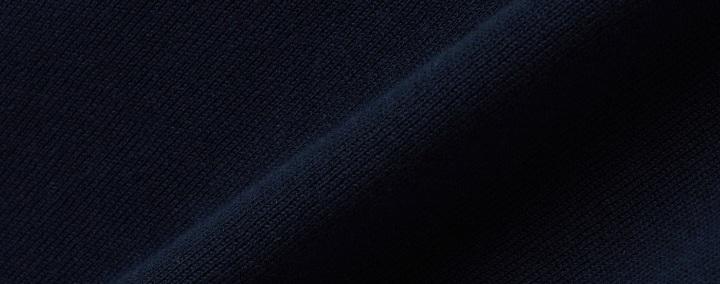 40番手の糸で編み立てることで、綿本来のやわらかな風合いを保ちつつ、ほのかな光沢とシャープさをプラス。上質さがさりげなく伝わる仕上がりです。原料にはオーストラリア産の長綿を採用。水資源の効率的な活用や環境管理プログラムなど、国際的にも評価されるサステナブルな取り組みのもとで生産された素材を使用しています。