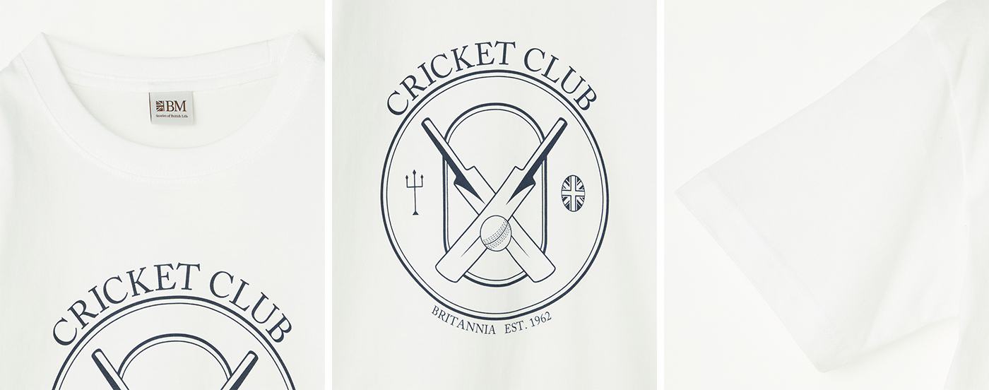イギリス発祥のクリケットをモチーフに、BMオリジナルのプリント柄で仕上げた一枚です。