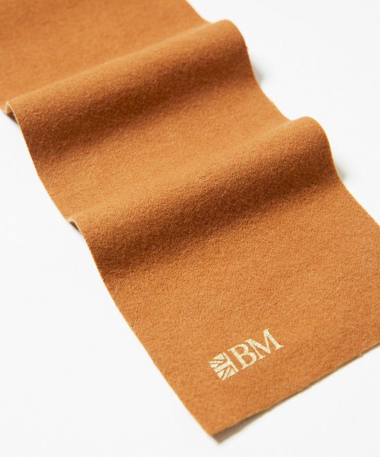 BRITISH MADE(ブリティッシュメイド)のイニシャルがプリントされた、フランネル生地のオリジナルシューケアクロス。