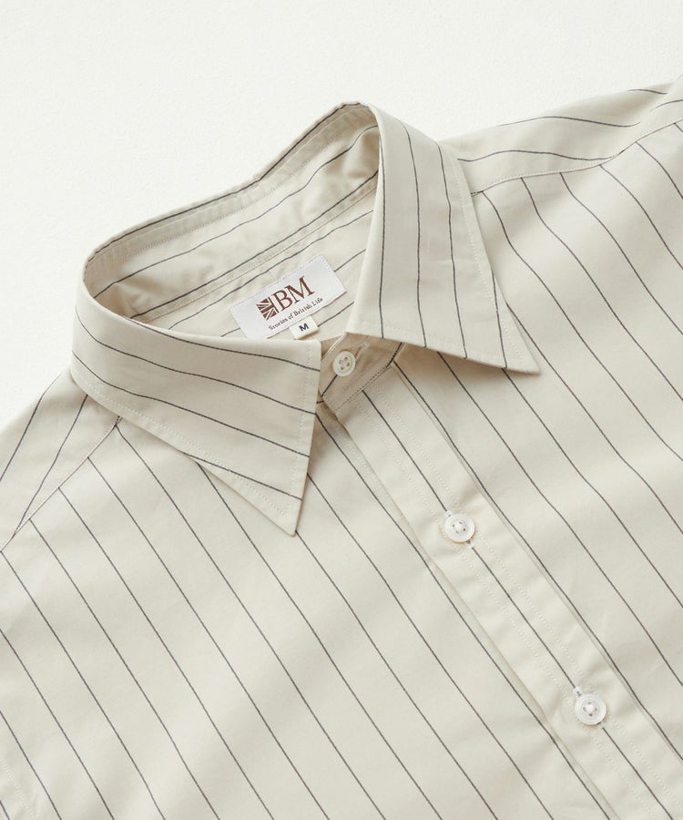 「ロンドン」は昔からある伝統的な英国式シャツの仕様をエッセンスとして、鎌倉シャツらしく落とし込んで作成したドレス向けシャツです。ベース、フィッティングはカジュアルシャツ「ブライトン」と一緒ですが、襟がよりドレスな印象の形に。タイドアップした際のVゾーンのバランスの良さ、ノットが綺麗に収まる襟の角度、ジャケットに綺麗に収まる長さが考えられています。またノータイでシャツ一枚でもサマになる、カーブした襟。特にサイドから見た際に内側に入る曲線のラインがポイント。