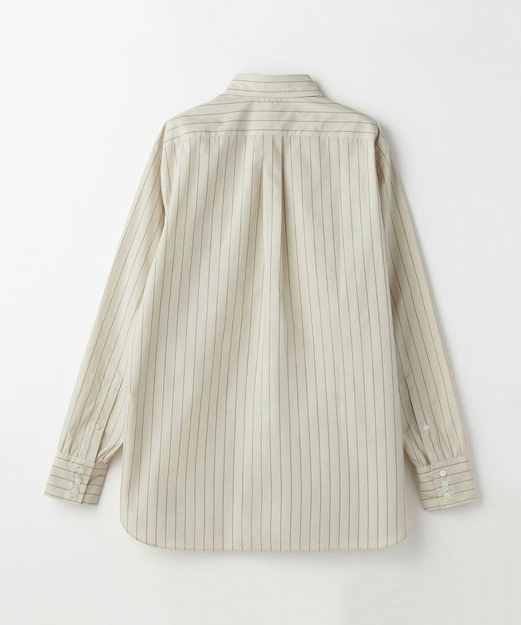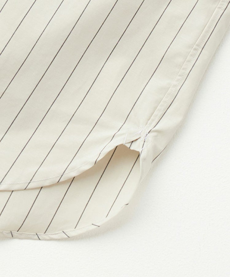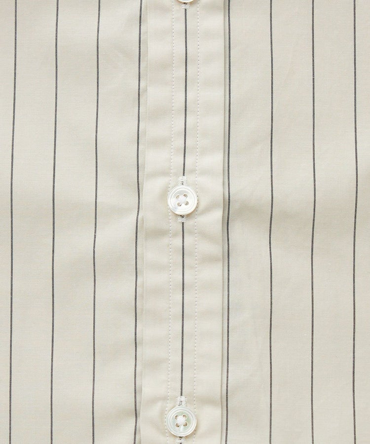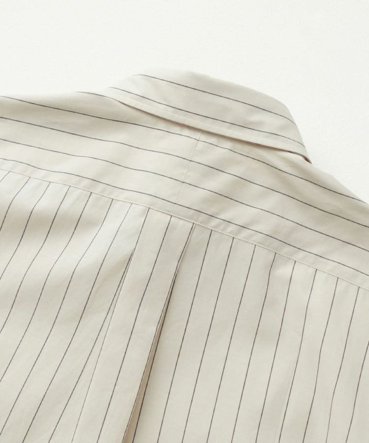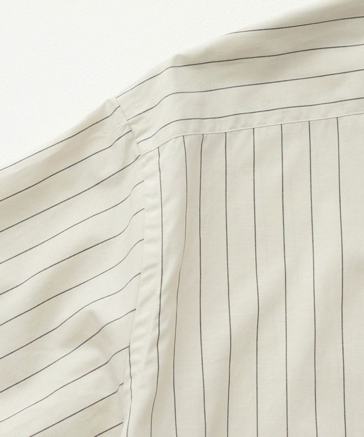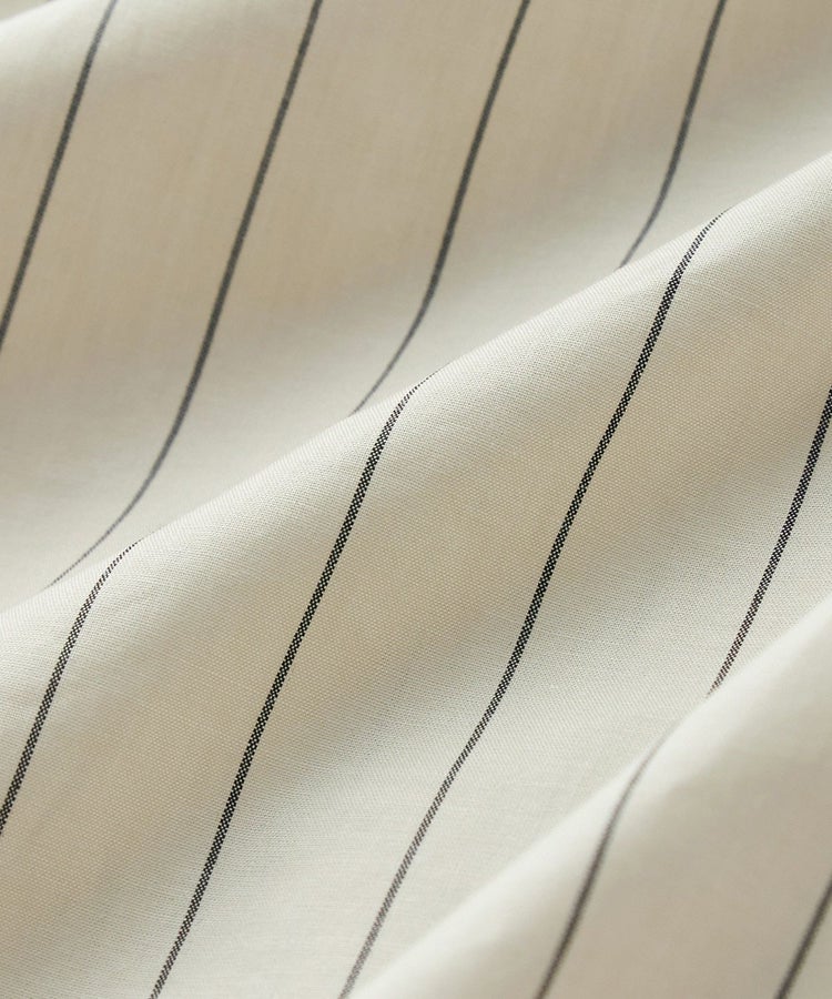 一般的なタイプライター生地の仕様や特徴と合わせつつ、60番手単糸と120番手双糸の交織による、上質で軽やかかつしなやかな高密度織りのコットン素材。細番手の組み合わせにより、薄く軽やかですが、高密度で型崩れしにくい特徴も持ち合わせています。ナチュラルな柔らかさと上品な光沢があり、サラリとした優しい風合いです。