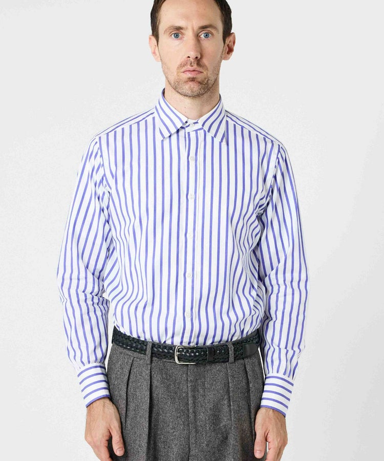 従来の英国シャツより幅広い着こなしに対応するドレスシャツ「ロンドン」。