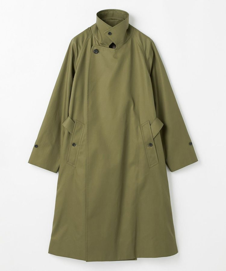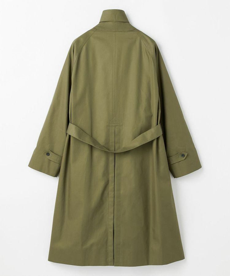 生地には、王道感のあるコットンギャバジンを採用。耐久性が高く、滑らかでしなやかな風合いがあり、程よい品の良さを引き立ててくれます。撥水加工が施されているところもポイント。丁寧なステッチワークを得意とする国内工場で生産するなど、細部にまでこだわった上質な一着です。