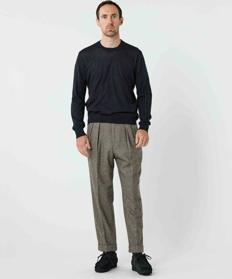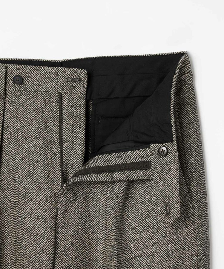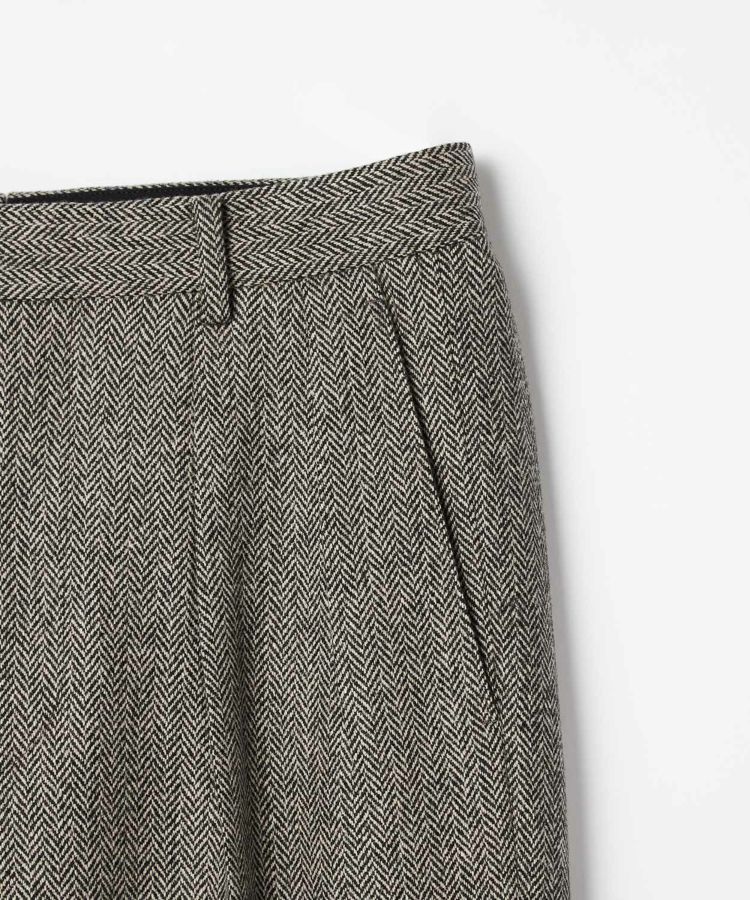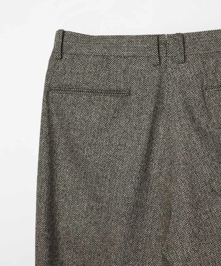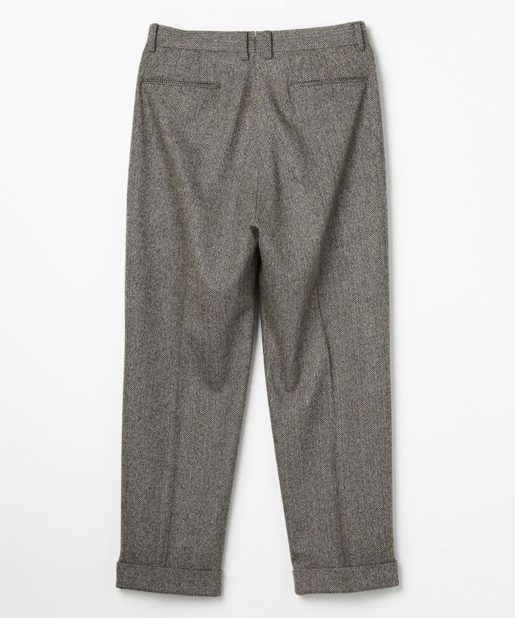 秋冬シーズンにふさわしいヘリンボーン素材は、ふくらみと柔らかさに優れ快適な着心地。ヘリンボーン特有の奥行きある表情が、英国らしいクラシックな雰囲気を演出します。オンオフを問わず着用できる、季節感と品格を兼ね備えたパンツです。