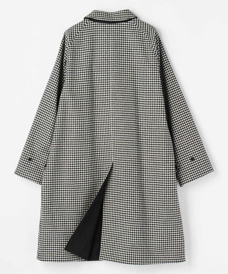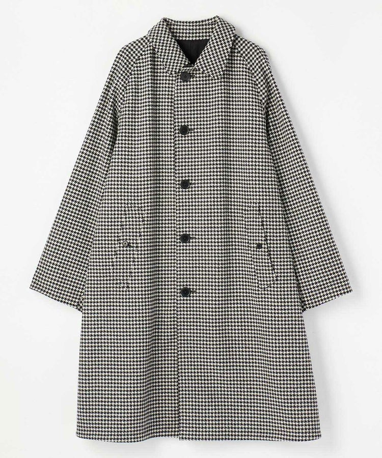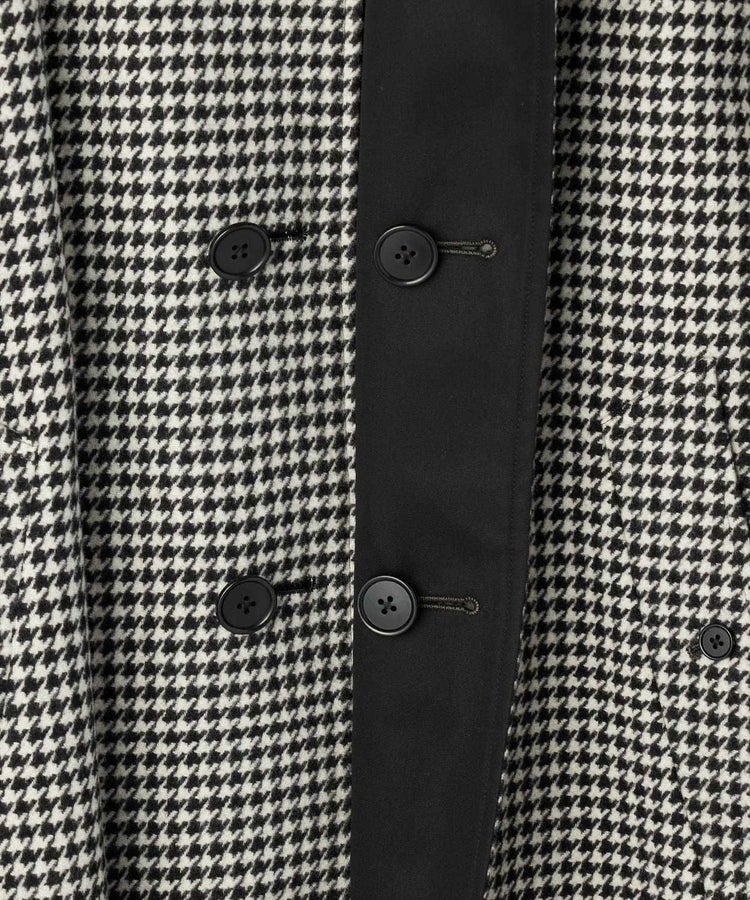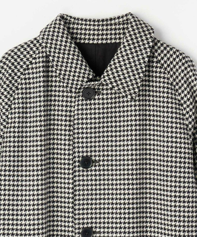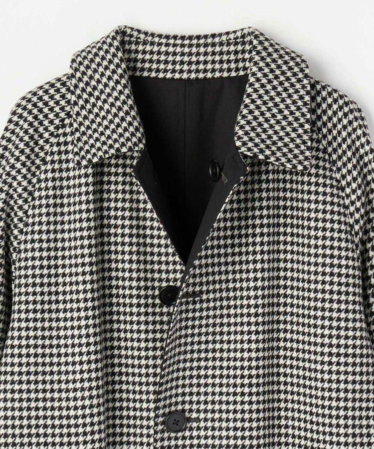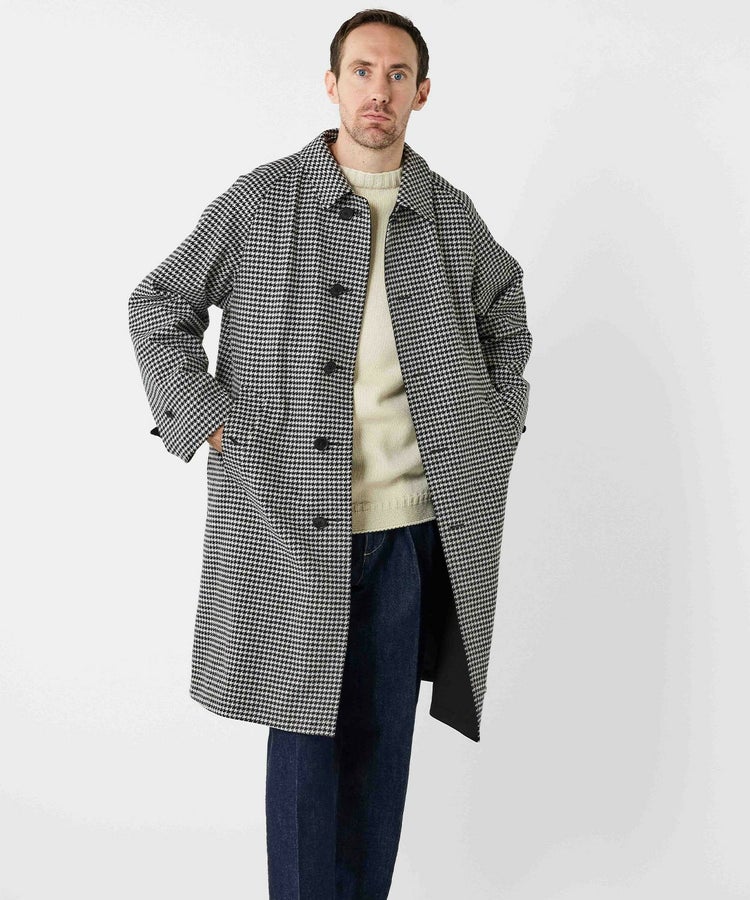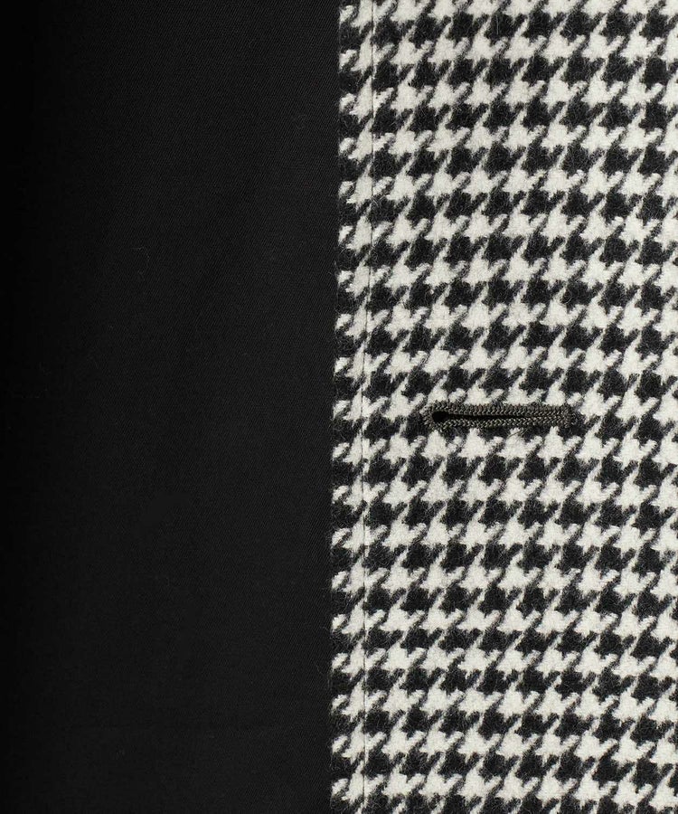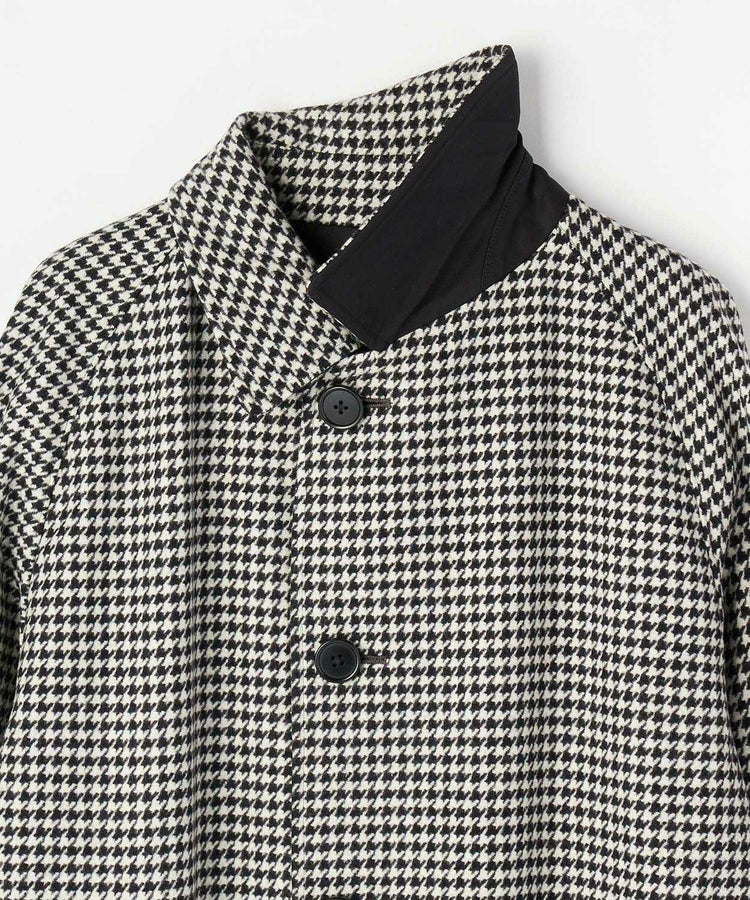 BLACK WHITE HOUNDTOOTHは、570g/mのしっかりとしたコート地ながら、super120's原料による上品なしなやかさを併せ持つ生地。太番手の16番糸でこの目付を出すには、高密度な打ち込みと確かな縮絨が必要で、高度な技術を物語る高級素材です。
