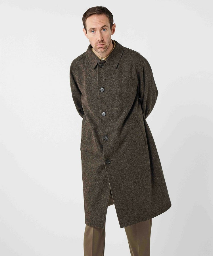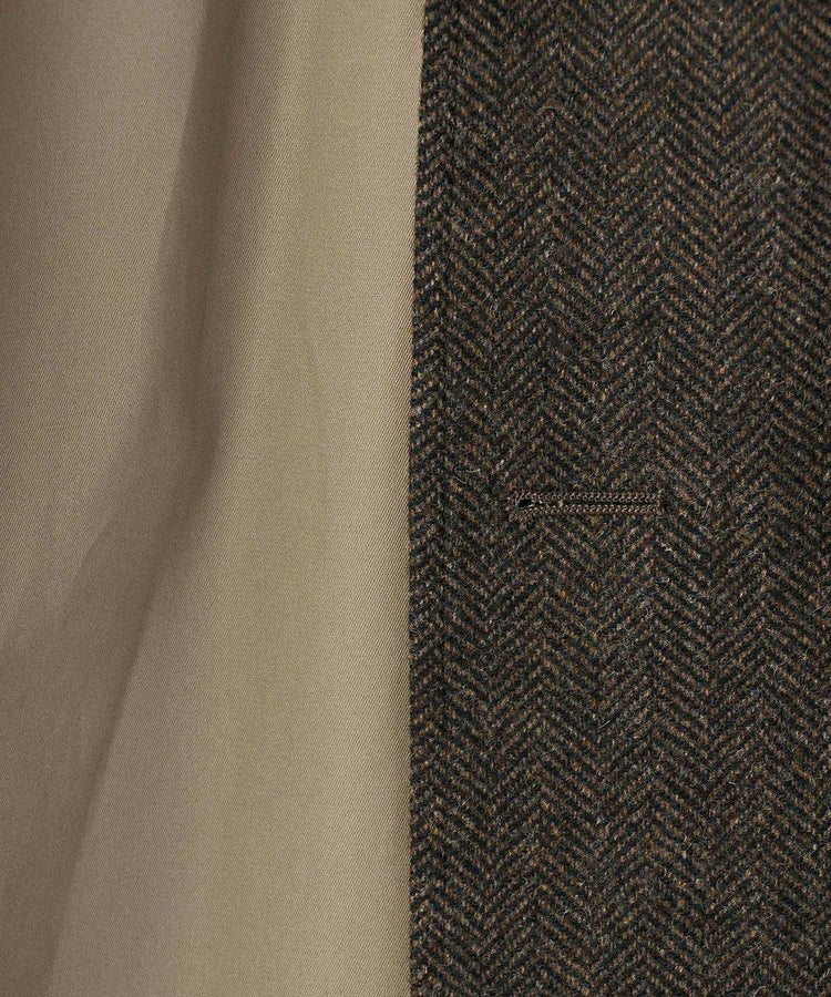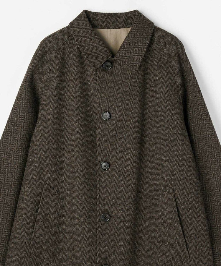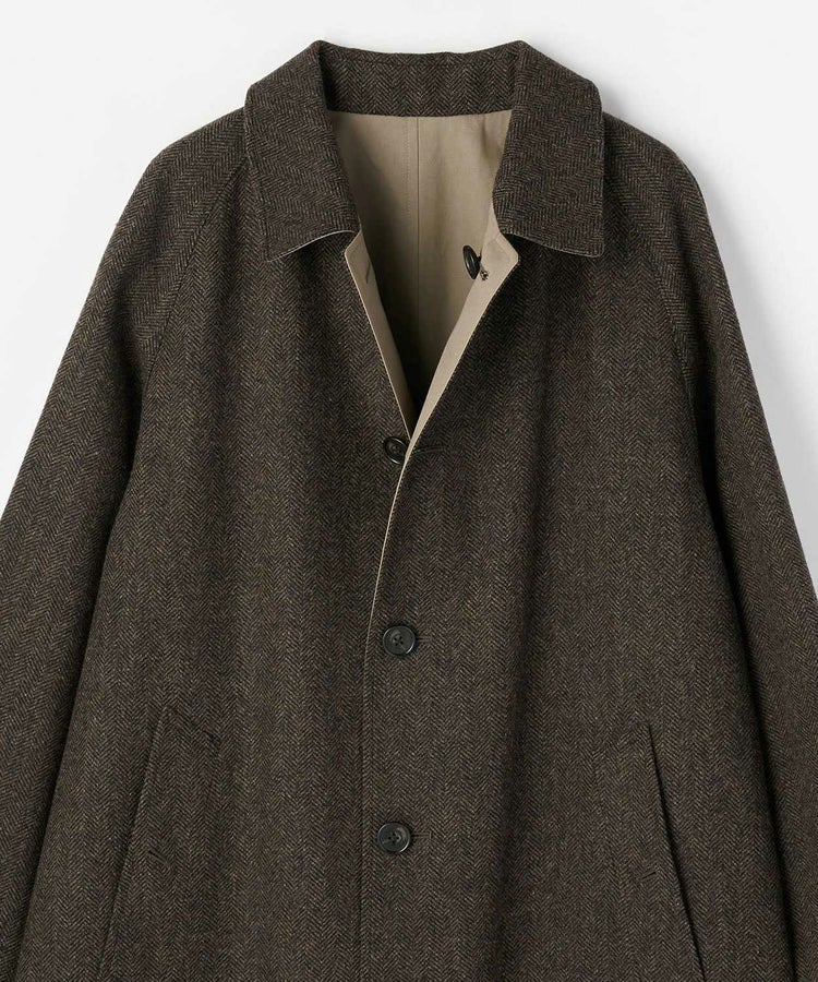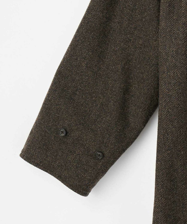 表地にはクラシカルなツイードを使用し、風合いにこだわりました。裏地には、上品な超高密度で織り上げたツイル素材を採用しています。日本一のコート工場で縫製が施され、その上で四方さんならではの独特のエッセンスが加わったブリティッシュメイドとしても120%の自信をもっておすすめしたい最高の1着です。
