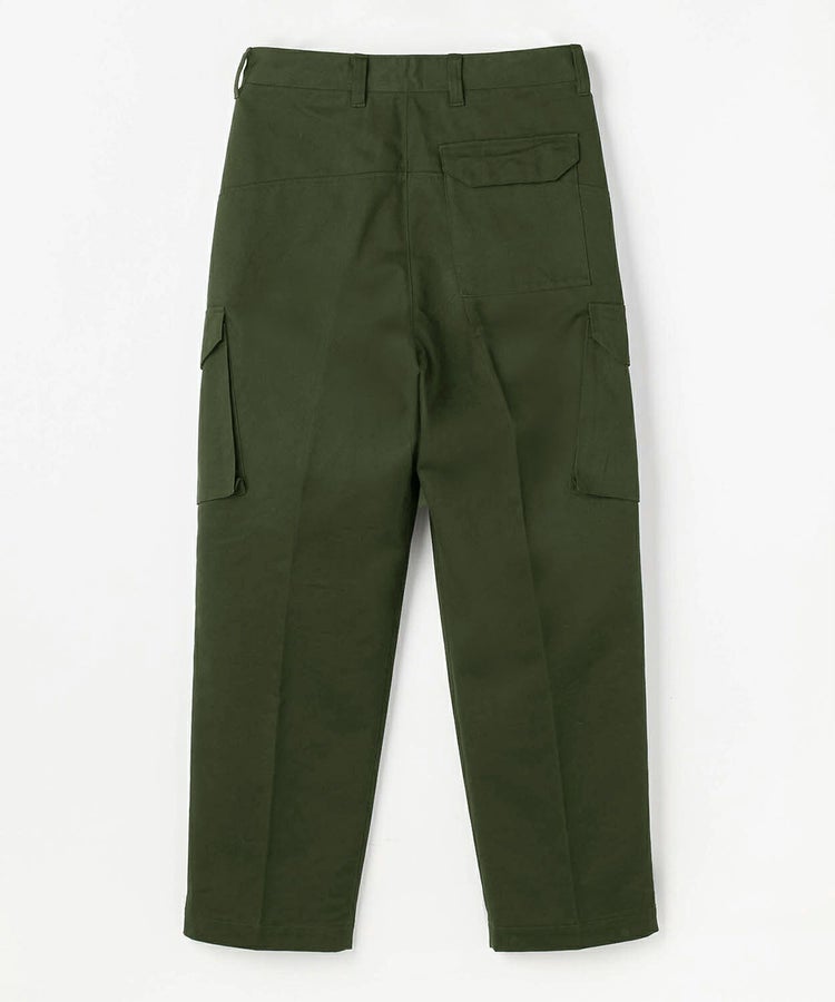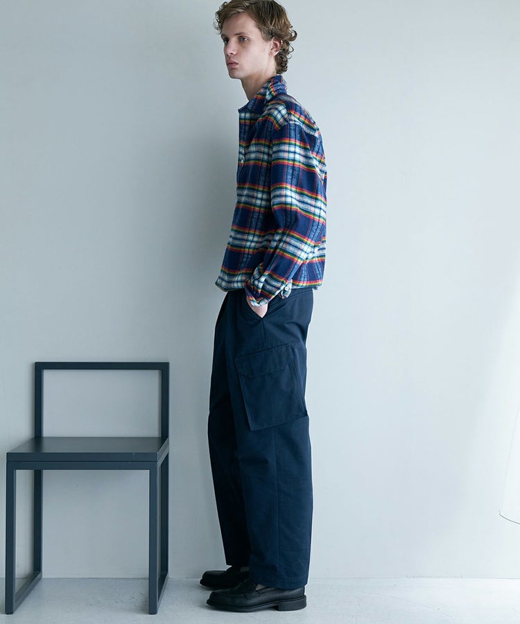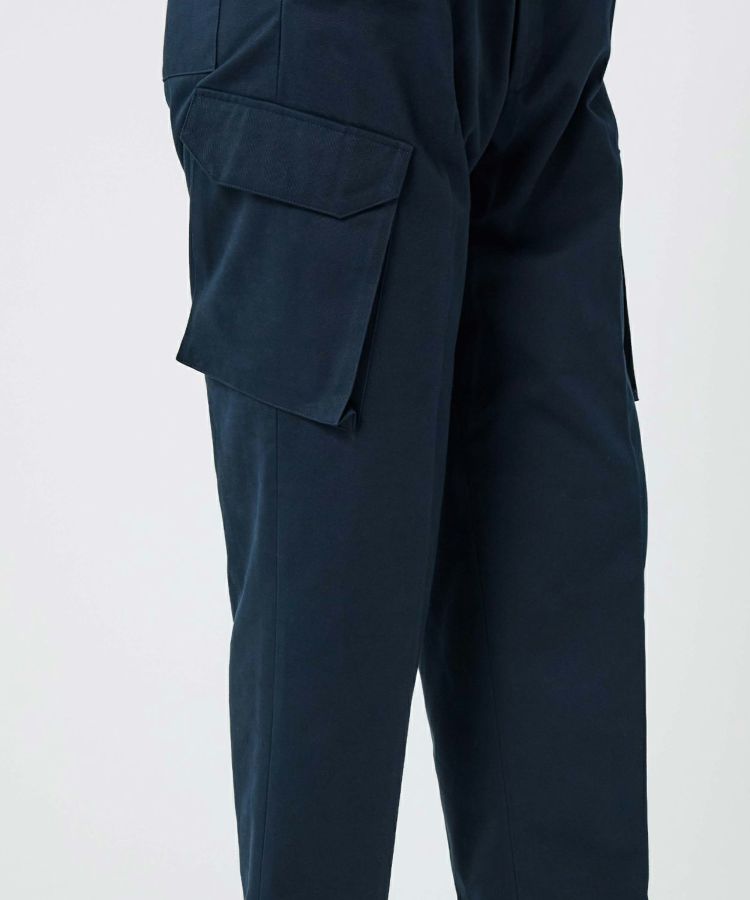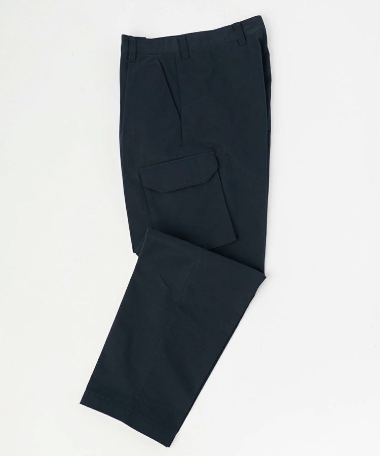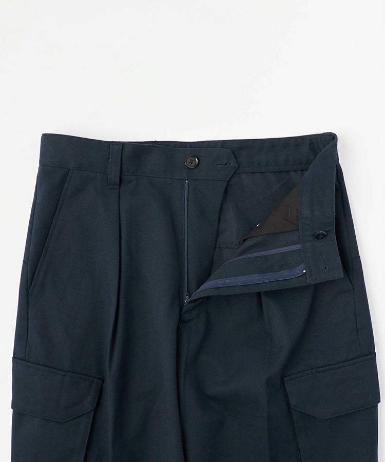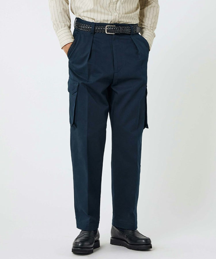 特徴的な斜めのカーゴポケットはそのままに、細身のシルエットを活かしながら深めのワンタックを取り入れ、都会的な着こなしにも馴染むよう仕上げました。