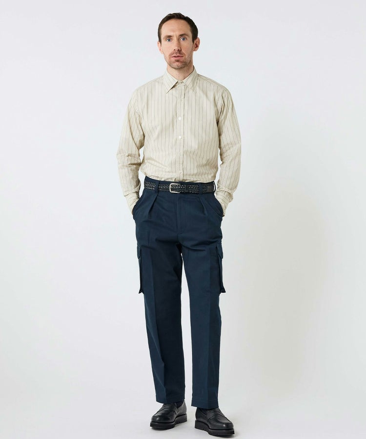 膝から裾へかけての絶妙なテーパードラインは、英国的な端正さを漂わせながらもリラックスしたムードを演出。ジャケットやレザーシューズと合わせれば、クラシックな英国スタイルに程よいミリタリーのニュアンスを添えることができます。カジュアルでありながら品格を感じさせる、まさに“今”のライフスタイルに相応しいカーゴパンツです。