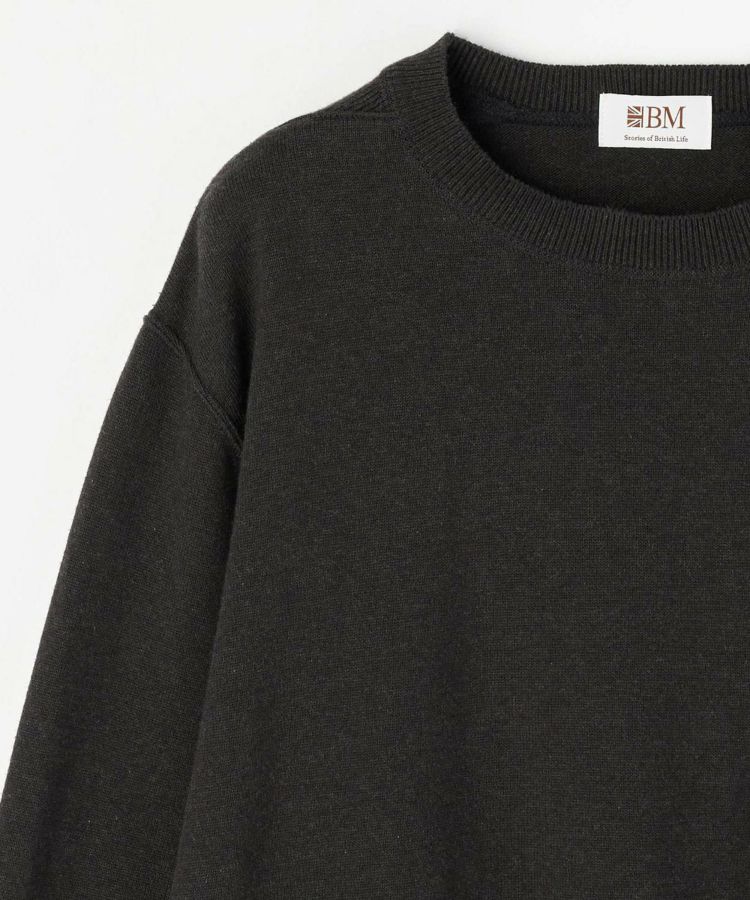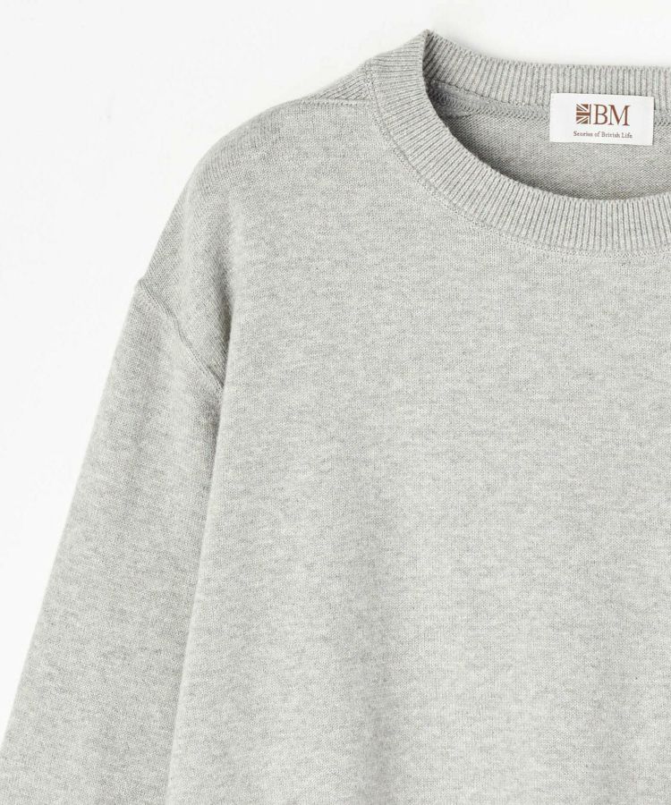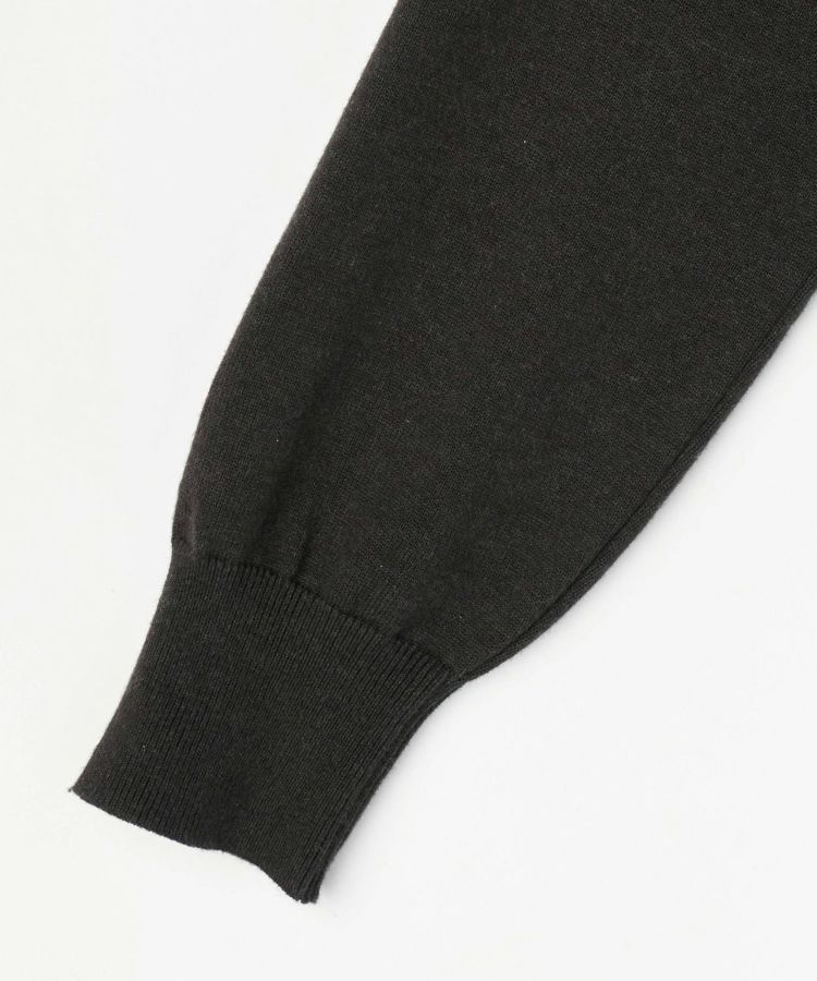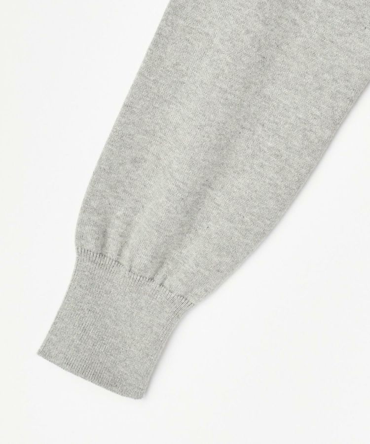首元サイドのガゼットはフィッシャーマンセーターのディテールを元にデザイン。スウェット風の仕立てで着心地が良く、起毛加工を取り入れた素材は肌触りも抜群です。少し短めの着丈は足長効果も。裾と袖口のリブは広めに作られているので、ブラウジングしてバランスよくコーディネートが可能です。