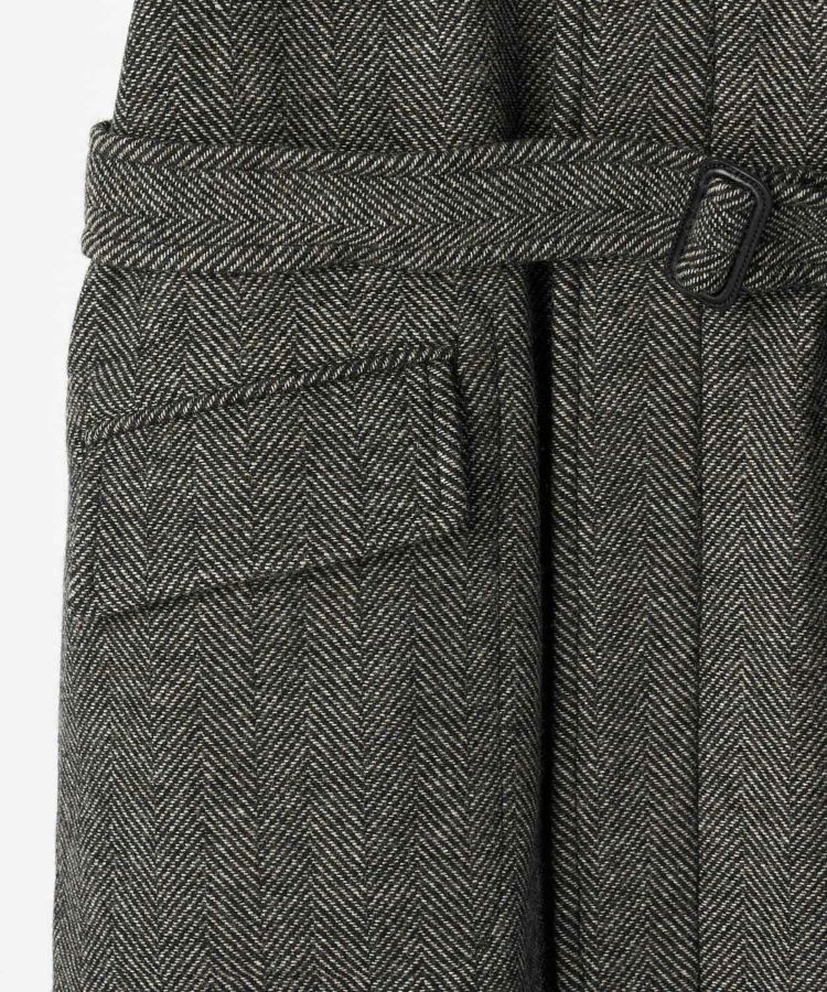 毛織物の産地、尾州で織られた国産生地です。大きめのへリンボ-ン織りがクラシカルな生地です。しっかりと織り上げた生地は、保温性に優れながらも軽やかな着心地。冬の冷たい空気を和らげつつ、洗練されたムードを演出します。