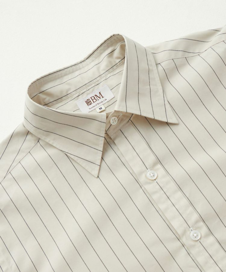 スタイリスト目線で考えた時代性と着回しやすさ、そして一人の服好きとしてシンプルに思った“こんなシャツが着たい!”という理想を形にしました。ビスポークスーツ、ラグジュアリーメゾン、カジュアルウェアと、スタイリストの中でも随一の守備範囲で活躍する四方章敬氏が手がけたシャツだけに、ブリティッシュメイドとしても120%の自信をもっておすすめしたい完成度です。
