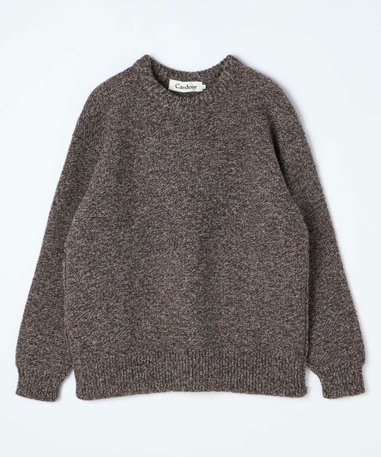 デザインは過去にマカラスターには存在しなかった形を製作。糸はcaledoorオリジナル色の依頼をした引き揃え糸で作成しています。タウンユースでもアウトドアでも使いやすいアイテムへと進化させるべく、アームホールや身幅は従来モデルよりも大きく、肩線をズラすなど細部をアレンジ。また、既存のマカラスターのニットに比べ、さらに度目を詰めることで重厚感がある風貌に仕上げています。シルエット・着用感はミッドレイヤーとしても使える、ランブリングに適した絶妙なサイズ感になっています。
