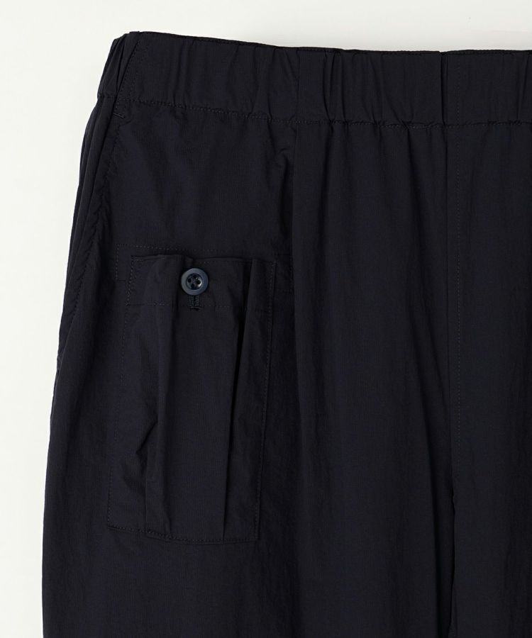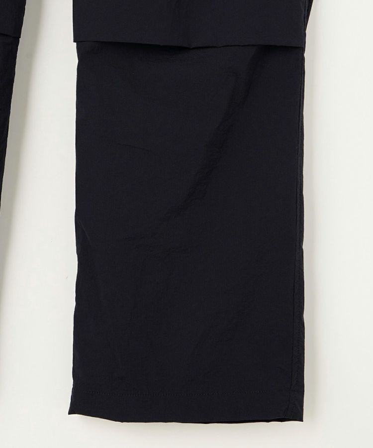 イギリスの定番的なコンバットトラウザーをベースにデザイン。ロングランブリングに適した作りにするため裾幅を太くし、歩きやすいようボリューム感を調整しています。ヒザ下には通気性も考慮したアクションプリーツを取り入れ、膝を曲げたりしゃがんだりしても生地が妨げにならない仕様です。ウエストをスポーツテイストのあるゴム仕様にし、さらに動きやすさがアップしています。素材感に合わせディテールを削ぎ落としたことで、よりロングランブリングに適したアイテムにアップデート。