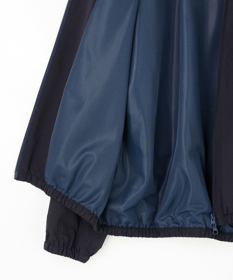クラシカルなハリントンジャケットとブリティッシュミリタリーのディテールを掛け合わせたデザインです。身幅を広く取りラグランスリーブにしたことで、中に着込んでも圧迫感のない“動けるブルゾン”に仕上がっています。ディテールを簡略化し歩きやすさを追求するため、袖口はカフスからゴムシャーリングへアップデートしています。取り外し可能なフード付ですので、シーンによって使い分けができ印象の変化を楽しめます。