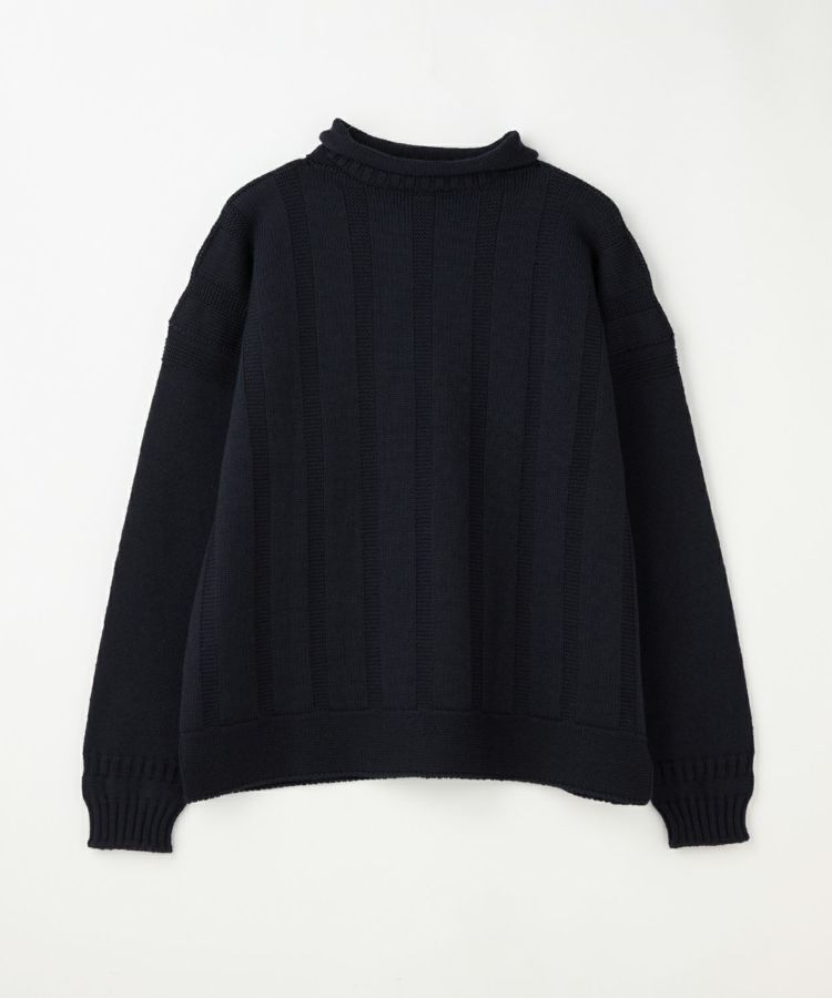 伝統的なガンジーニットのディテールを継承しながら、現代のライフスタイルに合わせてアップデートしたロールネックセーター。