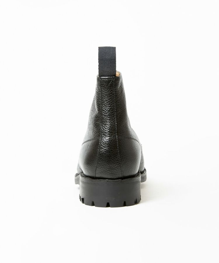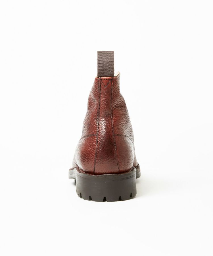英国軍へ納入実績のあるラスト4436、通称“ミリタリーラスト”の、傷・汚れ(水濡れ)にも強い大粒のシボが特徴的なグレインカーフレザーを採用しています。無骨ながらも愛らしい面構え、独特のステッチワーク、かかと周りにまでぐるりとコバがあしらわれたオールアラウンドグッドイヤーウェルト製法など、カントリーテイストを彷彿させるディテール。一般的なグッドイヤーウェルトではなく、アッパーをウェルトの上側に縫い付けたヴェルトショーン仕様を採用し、ホコリや雨水が入りにくい作りとなっています。ソールにはグリップ力があり悪路にも強いコマンドソールを使っているため、雨の日でも滑りにくくオールシーズン快適に歩くことができます。