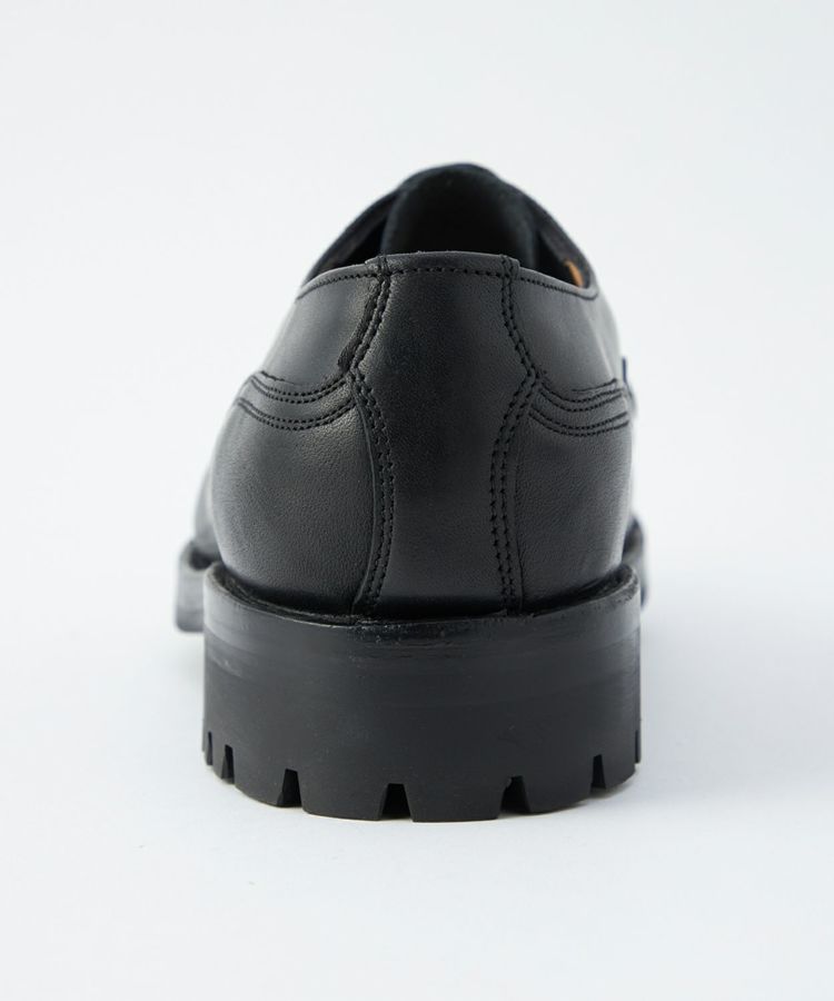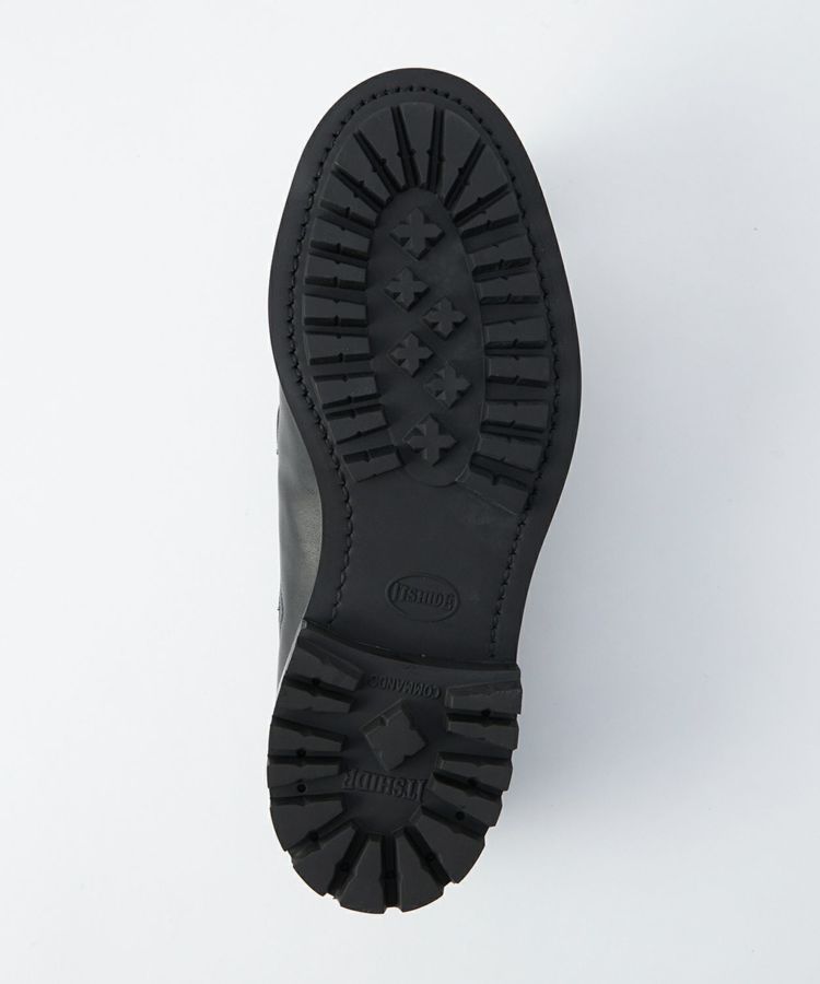 ソールには、さまざまなバリエーションが存在するラバーソールの中でも、極めて高いグリップ力と安定性を誇る「コマンドソール」を採用。険しい山道やぬかるみ、砂利道など、コンディションの悪い地面用に開発され、タウンユースでも快適さを発揮し、雨上がりやゴツゴツした石畳などを歩いても疲れにくいのが特徴です。サイドから見てもわかるほどくっきりとした凹凸が刻まれがっちりと厚みがあるため、タフで男らしい印象を演出してくれるのも魅力。