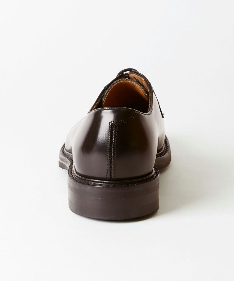 木型は12508ラストを採用。プレーントゥと木型のバランスが合間ってブリティッシュトラッド好きの方には堪らないデザインです。アッパーはブラックハイシャインというコーティングレザーで、さりげなく輝く絶妙な光沢感が好印象。サッとブラシで磨くだけで光沢感が蘇るところもポイントです。ストームウェルト仕様で、コバ周りの防塵や浸水を防いでくれる実用性も備え、ダイナイトソールで接地面が少なく、悪路の中でも滑りにくい特性があることも魅力です。程よいボリューム感で、ドレスとカジュアルの要素が融合されオンオフ問わず着用いただけます。