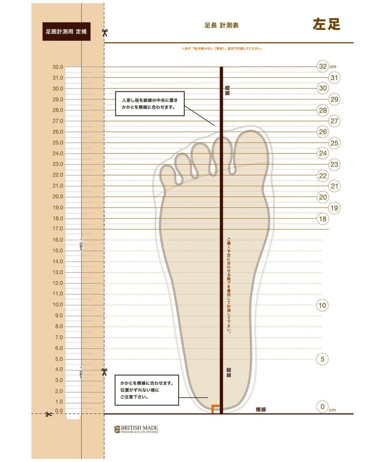 JOSEPH CHEANEY(ジョセフ チーニー) 、Church’s(チャーチ)の革靴はデザイン、木型、製法などによって靴を履いた際のフィッティングが異なります。オンラインショップでもご安心してサイズ選びができるよう「足型計測用紙」をご用意いたしました。サイズでお悩みの方はぜひお試しください。