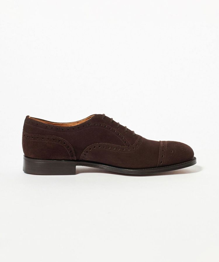 "外交官"の名を持つ、普遍的なオックスフォードシューズで、爪革やアイレットには精巧なブローグ(飾り穴)を施し、上品な装飾性で英国の風格を醸し出しています。すっきりした美しいシルエットに加え、インソールと中底の間に敷き詰められた練りコルクによって、履き心地の良さを実現。上質で柔らかいスエードのアッパーは、ウールスーツのビジネスシーンからチノパンやコーデュロイパンツなどのカジュアルなジャケパンスタイルまで幅広いスタイリングにあわせることが出来ます。