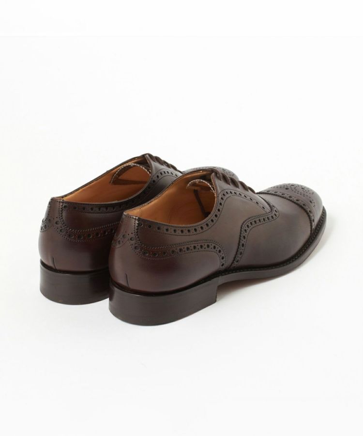 端正なフォルムと"外交官"の名を持つ、オックスフォードのDIPLOMAT(ディプロマット)。 英国の風格が飾り穴から醸し出されるセミブローグモデルです。アッパーには上質なカーフを採用。ソフトな質感で、履きこんでいくうちに革本来の艶感が表れ、経年変化を楽しめます。アッパーに施されたパーフォレーションやメダリオンは、丁寧で高い技術を感じさせる仕上がり。すっきりとした美しいシルエットに加え、インソールと中底の間にクッション層を敷くことによって、履き心地の良さが実現されています。 同ラストのコンサルと並び、ビジネスシーンでも高く支持されているモデルです。 ◆この商品の特徴 ・セミブローグのオックスフォード ・ソフトな質感のカーフ素材 ・レザーソール ・クッション性のあるインソール ・グッドイヤーウェルト製法 ・F FITTING ・173 LAST カラーバリエーション BLACK EBONY ◆173 LAST(木型) 2003年になって生まれたラスト173が、現在ではチャーチのドレスシューズにおけるメインラストとして君臨しています。 独特の丸みのあるセミスクエアトゥに、程よい長さのノーズ、このバランス感覚から生まれる美しいフォルム。長年、英国紳士達から愛され、彼らを支えてきたドレスシューズメインの木型です。角ばりすぎず、丸すぎないバランスの良いトゥは、上品で洗練された印象に。 チャーチのドレスシューズの定番に長く使用されていた、73ラストのトゥシェイプを受け継ぎながら現代人の足型を考え進化した、ビジネスシーンの王道を歩み続けるラストです。 左のモデルにはラスト173、右のモデルにはラスト100が採用されています。 全体としてクラシック過ぎない印象は、ラスト100を彷彿とさせるもの。ラスト173は、チャーチの歴史を築いてきた名ラストのDNAを受け継いでいます。 ◆より長くご愛用いただくために BRITISH MADEオリジナル メンズシューツリー ¥13,200(税込) シューツリーは、靴を大切に長くご愛用いただくための必須アイテム。愛用の靴をムレや型崩れから守ってくれる他、靴磨きの際にも入れておくと形が維持されるので磨きやすくなります。 ◆プロの靴磨き職人による靴磨きの全工程を伝授 “How to 靴磨き”をテーマに、プロの靴磨き職人による靴磨きの全工程一発撮りを有料配信。シューレースを解く工程から、鏡面磨きまでノーカットでご覧いただけます。*詳細はこちらから。 Church's / チャーチ Church’sは1873年、靴作りの町として有名なノーサンプトンで創業しました。正統派の英国靴として不動の地位を確立し、欧米のセレブリティや007のジェームズボンドも愛用することで知られています。チャーチのウェルト・シューズはグッドイヤー・ウェルト製法により、1足あたり250にもおよぶ工程を経て作られています。