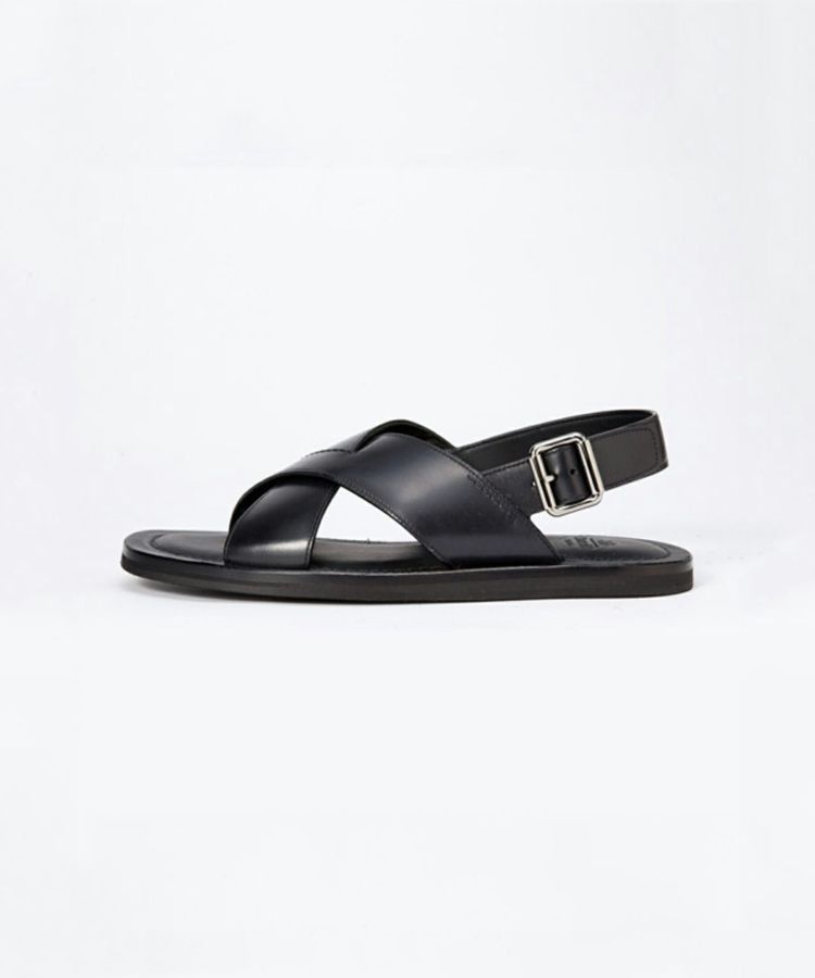 大胆にクロスしたアッパーのレザーが足の甲を贅沢に覆うことでスポーティさを最小限に抑え、印象的なかかと付近のメタルバッグルは着脱を容易にし、デザイン性と機能性を兼ね備えた一足。インソールには適度な弾力のあるパットが入っており、優れたフィット感が足を包み込みます。またソールにはラバーソールを使用しているので滑りにくく、摩擦にも強いので、安心してお使いいただけます。高級英国紳士靴らしいラグジュアリーさと、使い勝手のよい気軽さを備えた、まさに大人のためのサンダルです。