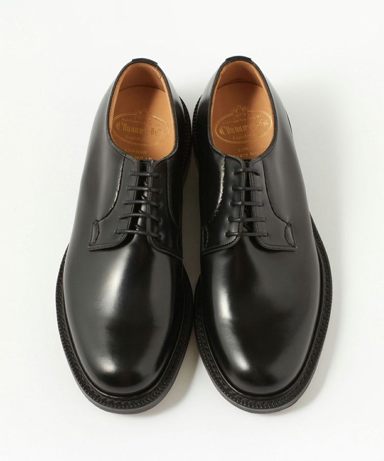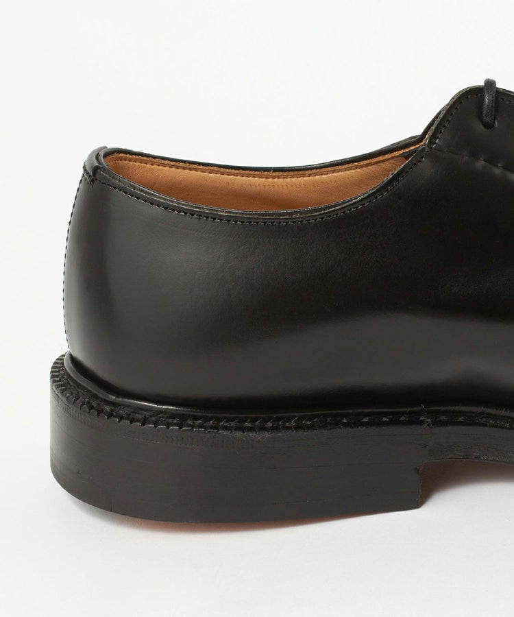 チャーチを語る上では欠かせないポリッシュドバインダーカーフがアッパーに使用されており、艶やかな質感が光ります。トゥに張り出したコバにはストームウェルトが採用され、雨や埃の侵入を程良く防いでくれます。分厚いトリプルソール仕上げの無骨なプレーントゥも相まって、非常に堅牢でボリューム感溢れる仕上がりです。