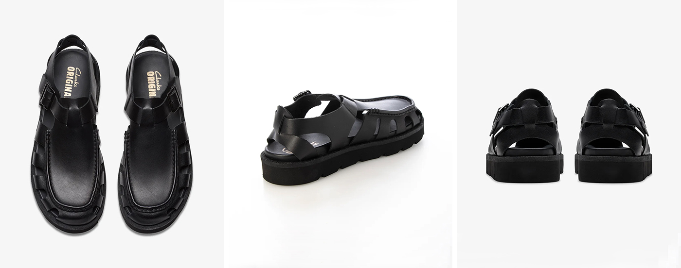 クラークスのアイコンシューズ「ワラビー」に着想を得たサンダル「メアバックル」。