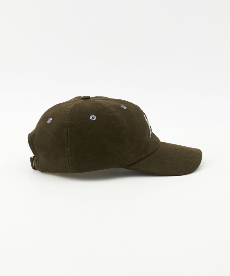 「旅先で出会ったヴィンテージキャップ」をテーマに仕立てたホースアップリケが印象的なモールスキンキャップ。