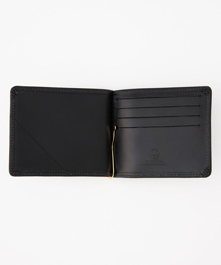 最も薄い財布でポケットなどに入れてもストレスフリー。シンプルな設計でありながら、お会計に必要な最低限の要素は完備。ゴールドのクリップは複数の紙幣をしっかり挟むことができ、なおかつ一枚だけを抜くのに丁度よい絶妙なホールド力。三角形にカットされたレザー部分は、お札を整え収める役割を果たします。