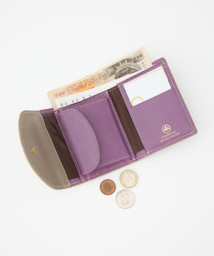 バッグの中で財布が開くのを防いでくれる、フラップ付きの三つ折り財布。
