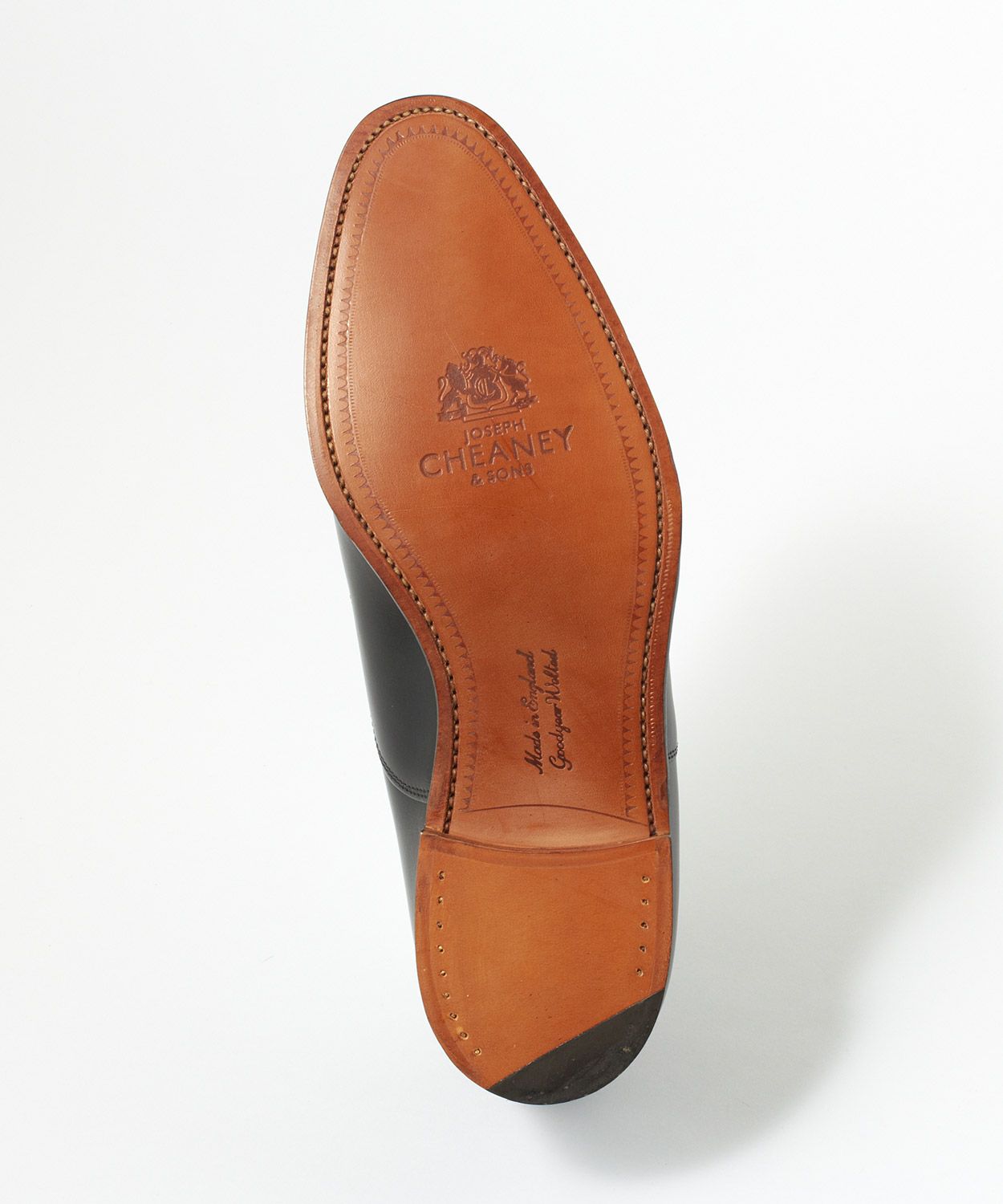 ジョセフ チーニーの靴は、創業当初より伝統的なグッドイヤーウェルト製法を採用しています。靴のアッパーとソールの間に長いベルト状のウェルト(細革)を縫い込ませるこの製法は、耐久性を高め、長く履き続ける上で欠かせないソールの交換を可能としています。